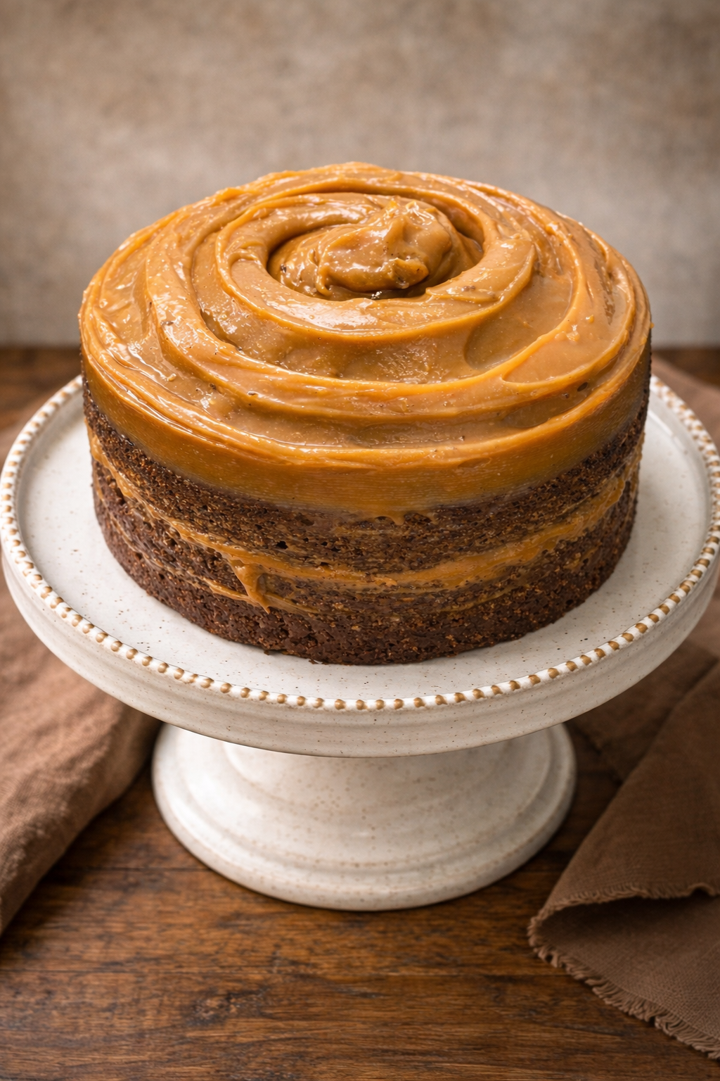 A massa é úmida, feita com muito chocolate derretido, intercalada por camadas de brigadeiro de Biscoff. Coberto com buttercream de chocolate. Uma combinação surpreendente para qualquer celebração.